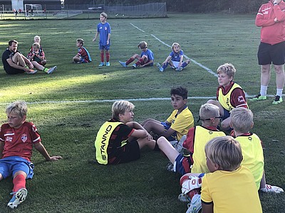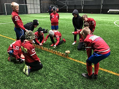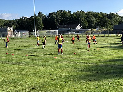 Vi började med upprop och lagfoto, sedan gick vi till Bilabhallen där vi gjorde fyra olika samarbetsövningar. När träningen var slut åt vi korv med bröd och glass till efterrätt. Vi avslutade kvällen med att sjunga Ja må han leva för en av våra tränare, som fyllde år samma dag.