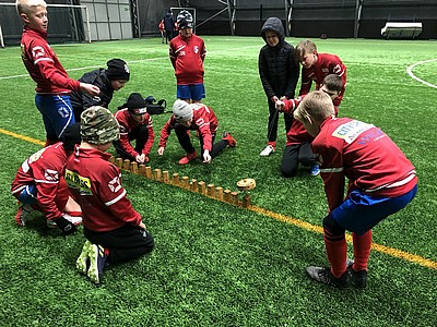 Idag hade killarna fått nya hjälptränare i form av fem killar från P08 som går utbildningen Unga ledare och som idag hade praktik hos oss i P12.
