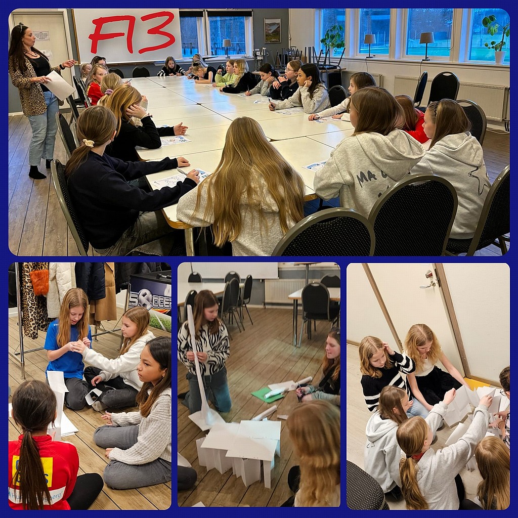 Avslutningsvis var det dags för en samarbetsuppgift där de bara kunde vinna om alla klarade uppgiften. De delades in i 4 grupper där varje grupp, med inledningsvis olika förutsättningar, skulle bygga så högt torn som möjligt av papper. Under övningens gång fick de idka byteshandel med andra grupper för att få tillgång till annat material som kunde hjälpa till i bygget och efter halva tiden bytte några av tjejerna grupper. De behövde alltså använda allas styrkor och hjälpa varandra. Det var kul att se dem, till slut, komma till insikt att det inte räckte att deras torn var högt utan alla måste vara det för att vinna priset...vilket de också gjorde.