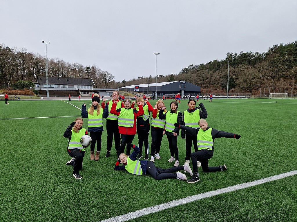 Här är gänget som på lördagen gjorde F13s allra första bollservice-insats. Tjejerna stod utplacerade runt planen, där de hjälpte spelarna med att snabbt få igång spelet igen när bollarna åkte ut. Det gjorde de med den äran och fick beröm av damernas ledare.