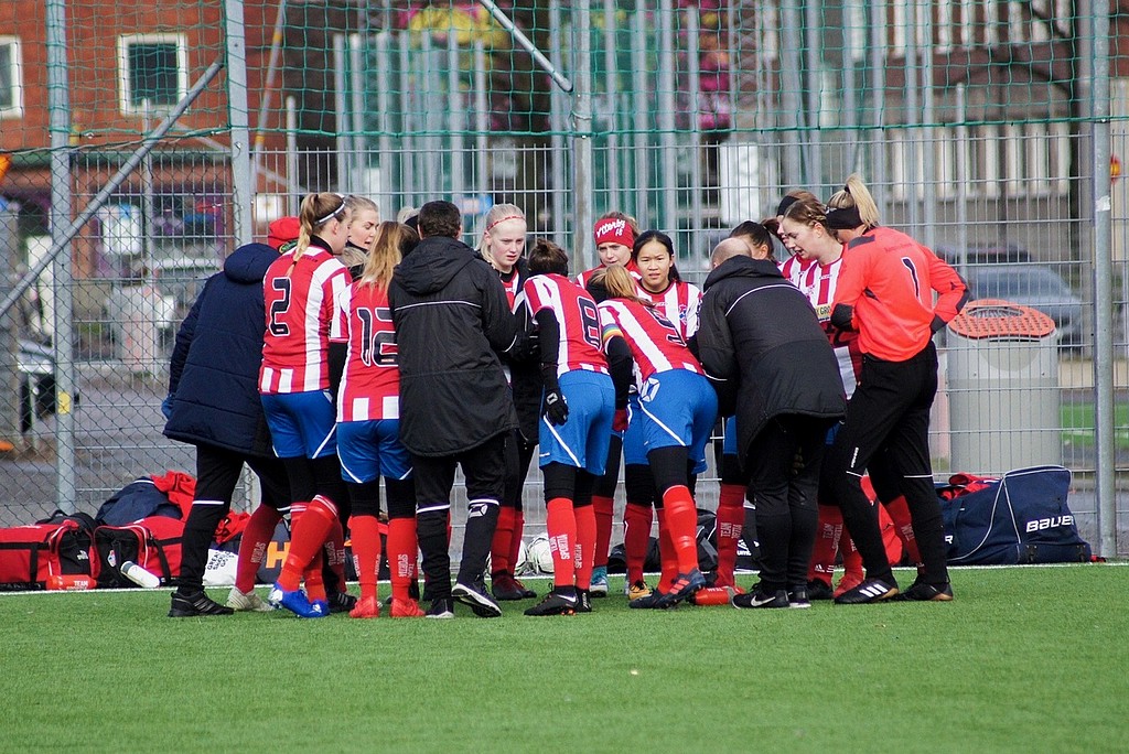 Det innebar stor oro i laget kryddat av ett par sena förändringar i startelvan. När dessutom Emma Nilsson fick en stenhård boll på näsan i matchinledningen som tvingade fram ett byte så var känslan av kaos någorlunda total för ett ögonblick. Debuterande juniorspelaren Olivia Lasu bokstavligen kastades in i hetluften två gånger om, ena gången med överdragsbyxorna hängandes runt skon, och visade upp en härlig inställning. Vi lyckades bita oss kvar i matchen men det var inget snack om att det var motståndarna som tog ett rejält tag om taktpinnen och vi fick ägna oss mer åt försvarsspel, och gjorde det bra. Mimmi avstyrde ett friläge på ett fint sätt, men annars skapades inte mycket som väckte oro.