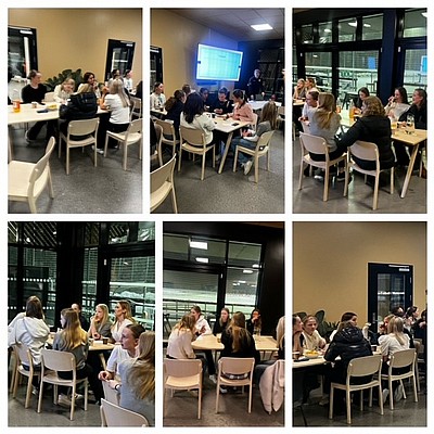 Efter maten höll Norskornas holländske heltidsanställde tränare en quiz för mixade lag norskor/svenskor.