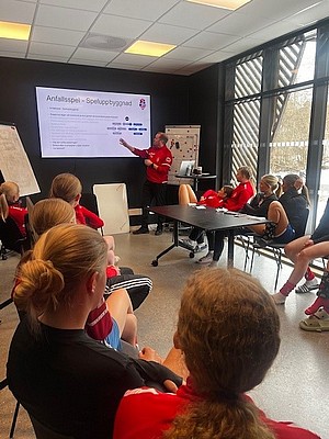 Sedan körde vi en timme teori med ett efterföljande kortare träningspass med fokus fasta situationer.